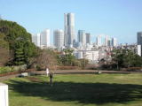 浅間神社がある丘の頂にある浅間台みはらし公園からみた現在のみなとみらい地区・・・・登り口は、三ツ沢公園方面寄りにある |
