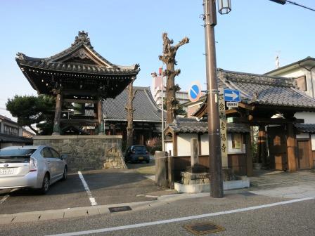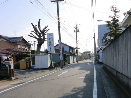 中山道と岐阜道の分岐点に立つ道標が今日の出発点である。 東に向かう道は少しふるい町並みで、右手に専福寺がある。山門前に親鸞聖人御舊蹟とある石柱がある。その先の善徳寺で左折する。 |