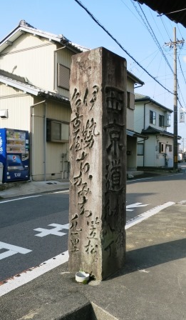 大安寺川にかかる新しい木橋を渡る。 川の上流.1.4kmには、応永18年(1411) 美濃の守護土岐頼益の創建という大安寺があ、土岐頼益の墓とともに、斎藤利永の墓もある。利永は守護代として土岐家を補佐し、後、稲葉山城(岐阜城)を居城にして斎藤家の基礎を築いた。(のち斎藤道三が名跡をつぐ) ![]() < 問屋場跡> 少し先に広い交差点がある。手前右側あたりが問屋場跡で、その説明板がある。(東町と西町それぞれにあった) その前に「是より西 尾州領」と刻まれた傍示石がある。交差点の向かい側には、「是より東 尾州領」が立つ。 交差点を越えた左側には、復元された高札場が建っている。 |