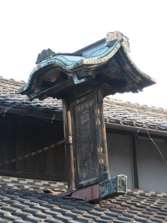 古い造りの民家がところどころにある。軒屋根に建っ ているふるい看板。 ![]() 連子格子の家。 |