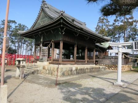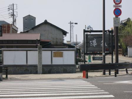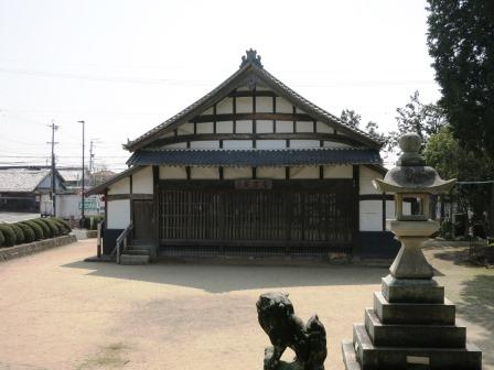 数百m先の鵜沼羽場町交差点で、国道は、右に分岐していく。 ようやく静かな街道歩きとなる。 ![]() 次の信号手前に津島神社がある。鳥居のすぐ奥の拝殿が「皆楽座」という建物になっている。廻り舞台、奈落、セリ、太夫席などを備え、公演時には舞台前面にむしろを敷いて見物席とした。明治24年の濃尾震災で倒壊、明治32年の再建された。 (説明標柱より) 拝殿の前に津島神社の藩塀(明るい部分が建っている。 |