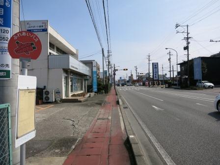 少し先で、交通量の非常に多い国道21号線に合流。左側の歩道をひらすら歩くのみである。 名鉄各務原線を越えてから、1kmほど先、三ツ池町交差点まで来ると、左側に長楽寺があり、道路側に三面 六臂の馬頭観音の祠がある。この交差点から400mほど先のJAのビルの手前(道の向かい側がニトリに駐車場がある)に、二十軒バス停がある。 このあたりに、二十軒茶屋があったという。 |