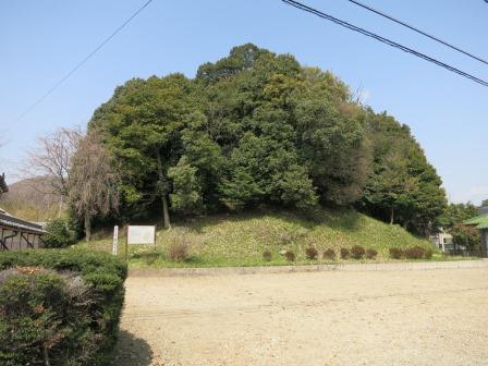 静かな住宅街を少し進むと右手のおくに、林が見えてくる。都クリニックの駐車場を右折してすぐに右折すると坊の塚古墳がある。5世紀前半に築かれた前方後円墳である。街道に戻り少し先、空安寺の隣に衣裳塚古墳がある。直径52m、高さ7mの円墳で、県下最大という。築造は、4世紀後半から5世紀前半と推定されるという。 |