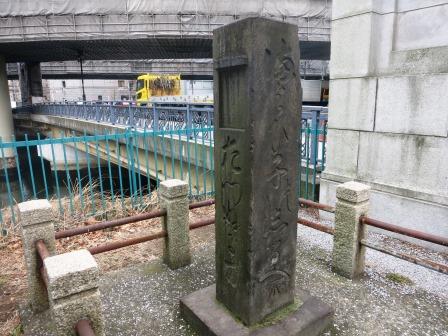 この一石橋の橋詰に、迷子探しのための告知石標が、安政4年(1857)建てられた。 日本橋から一石橋にかけての諸町名主などが世話人となり迷子保護の立場から町奉行に申請したものという。 正面 「満(ま)よひ子の志るへ」 右側面 「志らす類(る)方」 左側面 「たづぬる方」 とあり、 左側に迷子や尋ね人の紙を貼り、心当たりがあれば、その旨を右側に貼っていたという。 高さ約175cm、である。 |