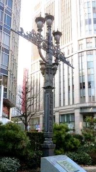 神社から100m程南の日本橋川に鎧橋がある。 、今まで見てきた橋と違い、鎧橋が最初に架けられたのは、明治5年(1872)で、三井・小野・島田の3人の豪商が費用を出し合って建設された、という。 橋が架けられたのと前後して、米や油の取引所、銀行や株式取引所などが開業し、商業の町として発展した。 |