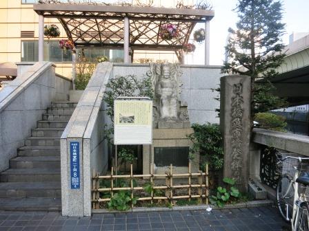江戸橋に行く途中に、三浦按針の屋敷跡にいく。 日本橋北詰の信号の先の一方通行の道を右に入っていく。 昭和初期までは「按針町」と呼ばれていた。 今でも電柱には「按針通り」の看板が付いている。 三浦按針(ウイリアム・アダムス)は慶長5年(1600)豊後国臼杵に漂着した。徳川家康に招かれ、造船、航海術、天文学などを指導した功績で旗本になり、相模国三浦郡に領地を、江戸に屋敷を与えられた。 元和6年(1620)按針は平戸で病死、領地であった逸見に供養塔が残されている。 |