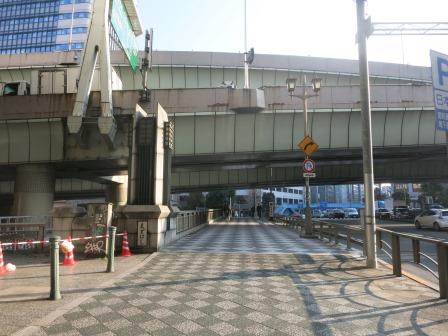 交差点から、東へ約100m、西河岸橋がある。 日本橋川の右岸地域が西河岸町の地名であったことから、明治24年((199) 西河岸橋として架設された。 ![]() 現在の橋は大正14年(1925)架け替え。 日本橋方面を見る ![]() |