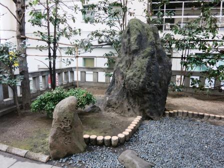 首都高速に沿って日本橋川に向かう。突当りにこじんまりとした兜神社がある。 由緒によると、明治11年(1878)東京株式取引所(東京証券取引所の前身)が設けられるに当たり、取引関係者一同が創立した。という。 ![]() 境内に「兜岩」が安置してある。 前9年(1050年代)の頃、源義家が東征の折、この岩に兜を懸けて戦勝を祈願した、と伝わる。 兜町という町名は、この兜岩に因んでつけられたという。 江戸橋までもどり、日本橋川の北側に位置する小網神社にいく。 |
