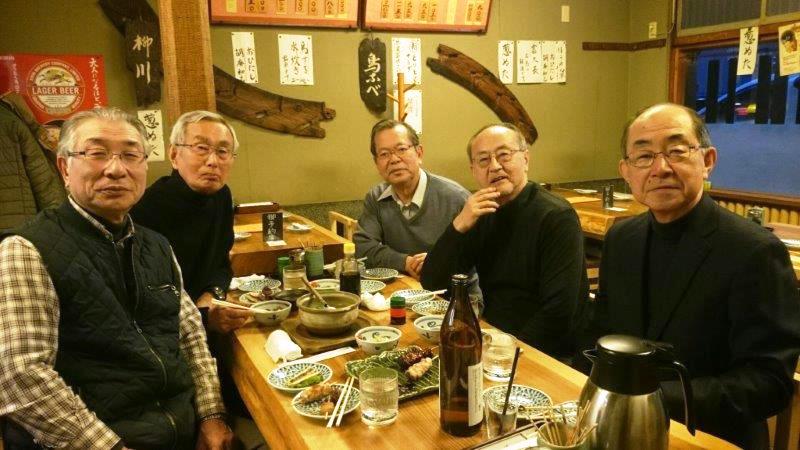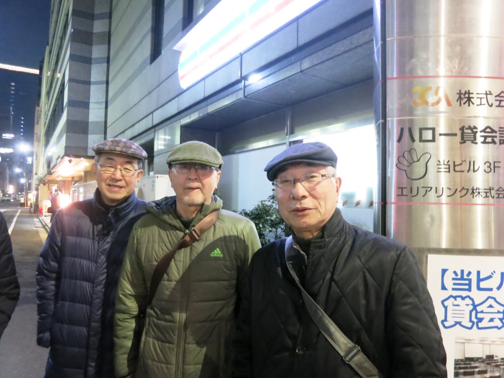 予定の5時より早く到着したが、すでに他の客が数人、店の前にいた。 今晩の料理に期待が持てる雰囲気がすでに漂っていた。![]() 明治時代から続く鳥料理の店。今は4代目という。 店内は我々にはぴったりで、くつろいで、ゆったりと料理が楽しめる雰囲気である。 隣のカウンター席のガラス越し一面に見える焼とりのコンロ、職人さんの調理風景・・・これも良い。 まずは焼鳥から・・・ジューシーでしっかりとそれぞれの味が引き立っている。 ひと通り味わってから あ まり見慣れない「倶利伽羅焼」をオーダー・・・・・ウナギのかば焼きを、焼き鳥風に串刺しで食べる ・・・・つまみにちょうど合う。店内の5人 帰り際の寒さが 心地よい茅場町の夜 ベレー帽が似合う年頃の三人。 |