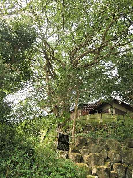 参道の石段の途中に大きなカゴノキが聳え立っている。 ![]() 高さ約23m、幹回り4、3m という東京都指定の天然記念物で、関東でも有数の大樹という。