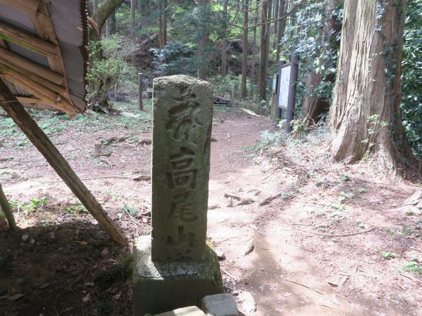 庚申塔、地蔵など立ち、寛政7年(1795)の高尾山道標がある。 |