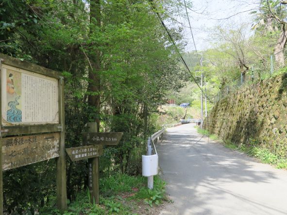 三叉路の正面に、「照手姫物語」の案内板と共に、「右方向 底沢・美女谷への甲州古道」という立て札がたっている。 説明板によれば、浄瑠璃や歌舞伎で知られている「小栗判官と照手姫」の物語に出てくる照手姫は 、小仏峠の麓の美女谷の生まれと伝えられて、ここの地名の由来になったといわれる。 |