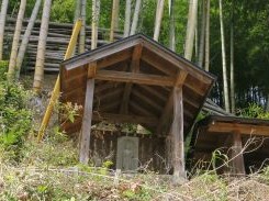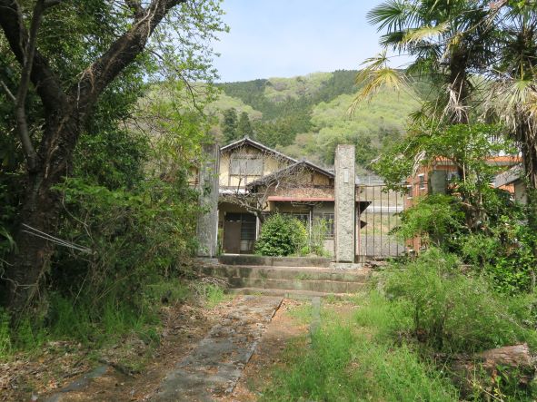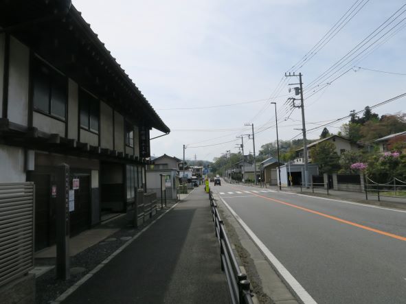 駅前を過ぎて数分、右手の石垣を数段上がった先に石の門があり、奥に建物がある。与瀬宿の本陣の跡という。 |