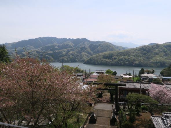 本陣跡の隣の道を、国道から離れて北に進む。 大きな鳥居と長い石段があり、背景の権現山とともそびえている。石段を上りきると、慈眼寺である。 神社は、左手の大きな木の鳥居をさらに進んだ所にある。 神社庁のHPによれば、「相模川の北岸にあった社を、この地にお祀りしたもので、昔から虫封祈祷が名高く『よせのごんげんさま』 と呼ばれていた。」 という。 <慈眼寺> <石段からの眺め> |