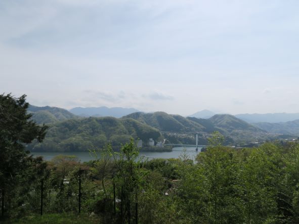 三叉路まで戻り、西に向かう。すぐ先右側に甲州古道 「横道」 の標柱がある。 南側に相模湖の雄大な景色が広がる。 山沿いの道には、石地蔵菩薩、供養佛、庚申塚などがある。 甲州古道「橋沢」の標柱あり。 約200mで、四叉路となり、旧街道はそこから南に下っていく。 |