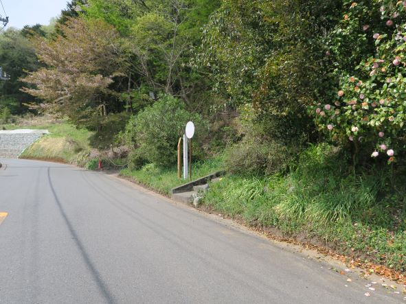 バス停「平野」の先から右手に分岐して、坂を上っていく。 <←坂道から東方向を望む> <土手に納まる石仏 > |
