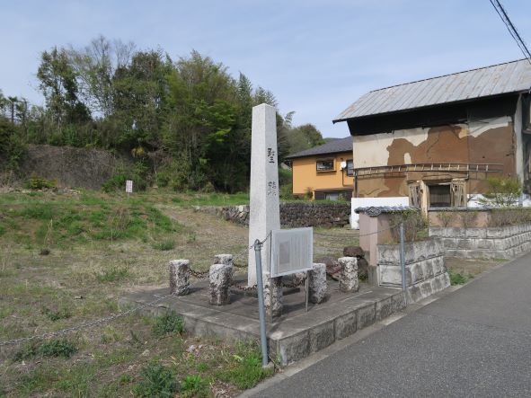 資料館の向かい側が、本陣跡。 広い敷地に土蔵だけが今も残されている。 説明版によれば、吉野家の由緒は、弘安年間に遡り、承久の乱(1221)の時、一族は天皇方に従い、宇治の戦に敗れ、故郷を去りこの地にすみ着いた、という。 「聖跡」と刻まれた大きな石柱が建つ。 |