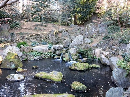 <水分石> と <枕流洞> ![]() 作庭当時は、水源には 「千川上水」が利用されていた。 |