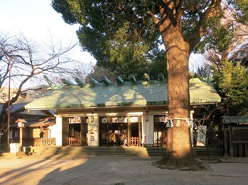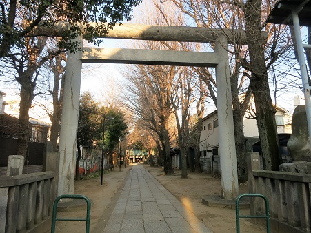 鳥居から長い参道が続き、その奥にコンクリート製の神明造りの社殿がある。 社伝によると、文治5年(1189)、源頼朝の奥州征伐の折、松の枝に大麻(伊勢神宮の御札)が架かっているのを見つけ、良い前触れとして、この地に神明を祭ったのが始まりという。 以来駒込神明宮と称され、総鎮守・氏神として親しまれてきたという。 |