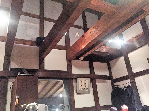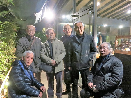 釜揚げうどんの専門店であると同時に、選ばれた日本酒がそろっている。 味も”だし”が程よく効いたつまみ類も年配者好みのものが多く用意されている。しかも右の写真の様に、天井が高く独特の部屋の雰囲気で 「酒・肴」と共に、大いに楽しみことができた。 <店への入り口の前で> ![]() |