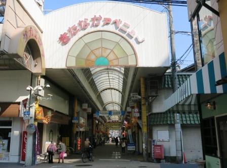 商店街の途中約200m進んだ交差点右側前方に覚善寺の山門が見える。先ほど通ったトンネルが明治19年(1886)に完成したのち、東海道のルートが変更され、ここから東へ進むことになり、新しく道標が建てられた。 中山道に面していた覚善寺の南西角にあったが、ここ山門前に移された。 ![]() アーケードを抜けたところあたりに、草津一里塚があったという。 その先の通りは中山道を示す薄茶色に舗装されている。 |