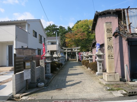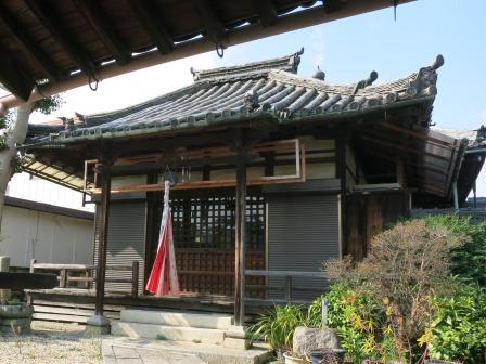 小さな川を渡った先に右側にこんもりした林があり、伊砂砂神社がある。 創建は不明で、この名前は明治からのもので、古くは天大将軍社と称したという。、国の重文の本殿は棟札によれば、応仁2年(1468)に建立され、ご元禄4年(1691)修理されているという。 室町時代後期の本殿建築の様式がよく出ているという。 しばらく行った先はJR線に、さえぎられている。そこで、畳店の前から左に入りちいさな細いトンネルをくぐって、JRの西側にでたあと、北東にまっすぐ進む。栗東市にはいる。 |