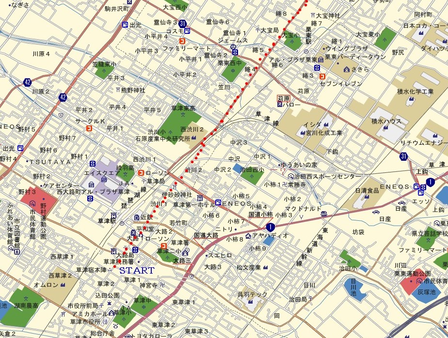 草津―武佐 地図→①草津-栗東 ②栗東-野洲 ③野洲-鏡 ④鏡-武佐 |
