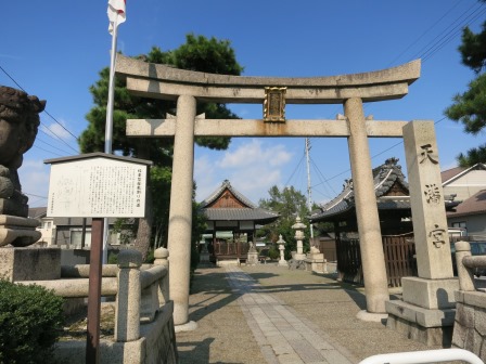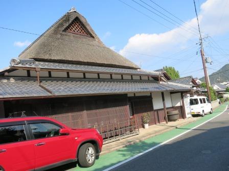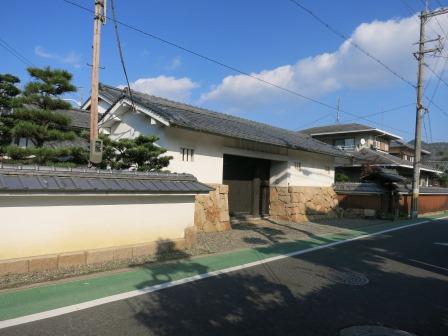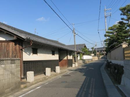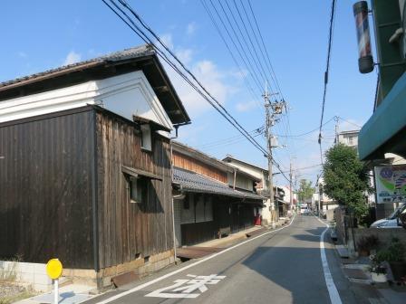 左手には天満宮がある。 天徳3年(959)の創建という。 鳥居の前に、「稲妻型屋敷割りの道」の説明板がある。このあたりの道は、道幅が広く、また道路に沿った民家の敷地が、一戸ごとに段違いになっているという。その段違いの長さは一定ではないが、およそ2~3尺で間口の幅とは関連ないという。 屋敷割の説明図⇒ 天満宮の向かいには、昔の面影を残した造り酒屋「うの家」がある。元総理の宇野氏の生まれ育ったところ。今は守山市が買い取り、改修し情報発信の場としている。 |