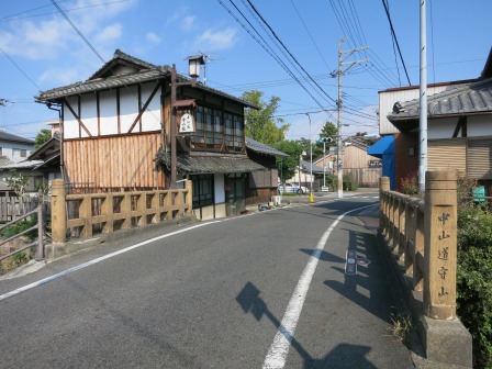 町並みは、東西に1.3kmで、天保14年(1843)の総家数は415軒、本陣 2、脇本陣 1、 旅籠 30軒という。 京都三条大橋から江戸に向かう人の最初の泊りが守山宿という。 |