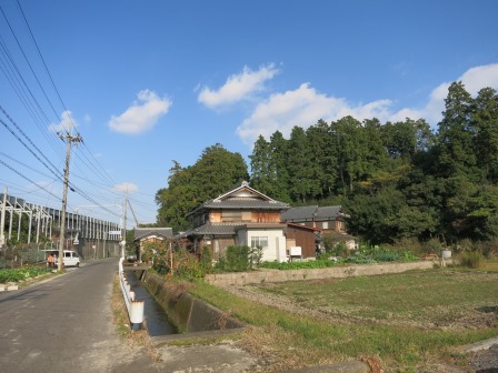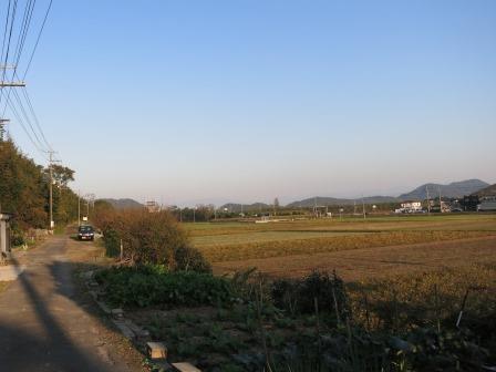 集落がとぎれ、新幹線の高架が近くになり、右側には田畑がひろがる。その先に小高い丘陵が迫ってくる。このあたり一帯は弥生時代の24口の銅鐸が発見された遺跡や、5世紀~6世紀の多くの古墳が残っているところで、大岩山遺跡と大岩山古墳群とよばれる。、 |