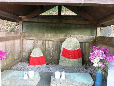 国道に戻るとすぐに、右側を並行して進む細い道がある。右側に中山道らしく 祠の中に2体の地蔵が安置されている。. すぐ先に説明板があり、「このあたりには東山道の篠原駅があり、宿場とともに栄えていた。鎌倉時代頃より、篠原宿は衰え、宿場は鏡のほうに移っていった。」という。 |
