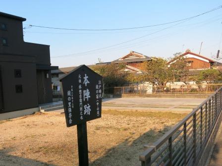 次の右角に、本陣跡の石柱と説明板がある。本陣があったと推定される場所という。左には「井戸跡」が残されている。井戸は守山宿は野洲川の旧河道がつくった自然堤防という微高地のため、用水路がなく宿場の防火や生活用水に使用された、という。 |