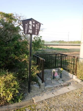 牛若丸は承安4年(1174)鞍馬寺を脱して金売吉次と東国に下る途中、ここ鏡の宿で元服の儀を行った。その時に使った水の池という. この地の烏帽子屋五郎太夫宅に宿泊し、夜半強盗が侵入したが牛若丸がことごとく退治りしたという伝説がある。 |