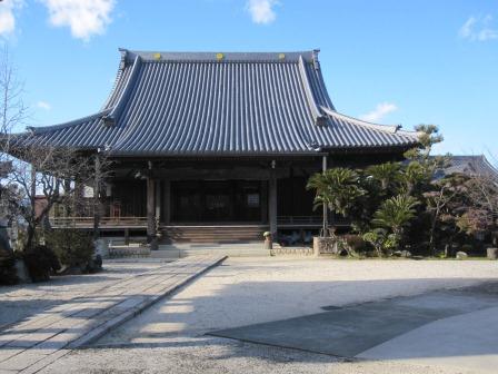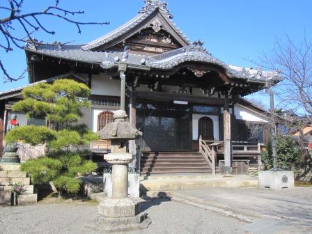 すぐ先に大きな本堂と広い境内の寺がある。 正治元年(1199)、 小向神明宮の別当寺として創建され、その後、慶長8年(1603)浄泉坊として再興された。桑名藩の奥方の菩提寺であったため、山門や瓦に徳川家の三ツ葉葵が入っており、参勤交代の大名は駕籠から一礼したという。明治43年(1909)建立の本堂の鬼瓦→ |
