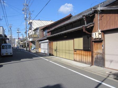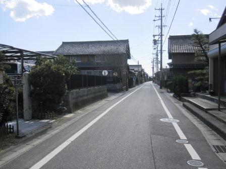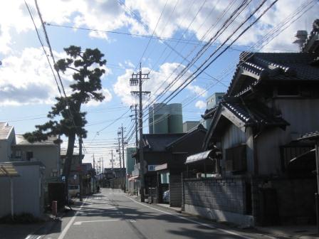 県道64号線の高架を過ぎると、自動車関連の事業所が建ちならび道幅もその区間だけ広くなっている。 米洗川の手前に非常に大きな常夜燈が存在感を示して建っている。 200mほど進むと小公園の広場の脇に小さな地蔵堂が ある。しばらく古い町並みを歩いていくと、松並木の名残が一本残っている 。 |