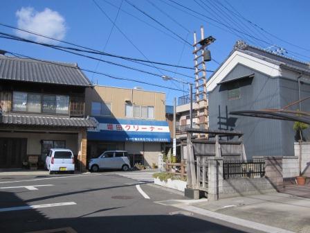 200m程西にいったところで突き当りとなり、東海道は左折する。 角には復元された火の見櫓が建ち、説明板がある。この矢田町から左折した福江町にかけては、矢田立場のつづきで、茶店や宿屋が多くあったという。 西国からの大名などが通行する際には、桑名藩から役人が出迎えて、ここから案内をしたという。 |