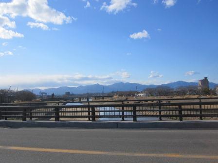 町屋川にぶつかる所は小公園となっており町屋橋跡の説明板がある。 桑名入り口に位置する立場であり、また町屋川の舟運の船着き場であったの大いに賑わったという。寛永12年(1635)から対岸の縄生の間に町屋橋が架けられていた。南側に昭和8年(1933)の国道1号線の橋ができ、廃止となった。 <町屋橋跡から 鈴鹿山脈を望む> 鈴鹿山脈を源とする員弁川(いなべ)は、このあたりの下流が町屋川と呼ばれている、町屋川と呼ばれている。![]() 少し南にある国道1号線にかかる町屋橋をわたるが、鈴鹿おろしの風が強い。 |