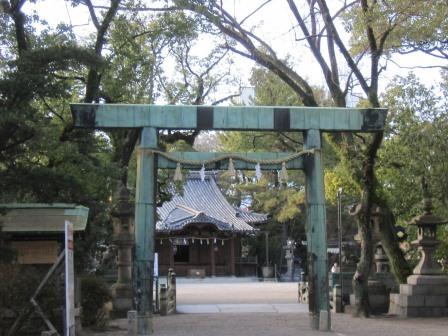 工場の敷地を過ぎると、立派な鳥居の立つ神社がある。由緒によると、垂仁天皇の皇女 倭姫命が伊勢神宮が創建される際に、大和から伊勢の国に巡行の折、この地に仮座したいう伝承がある、という。 伊勢神宮との関係が深く、古来より式年遷宮には、内宮一ノ鳥居や古殿舎の一部が下賜されているという。 |