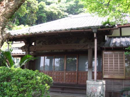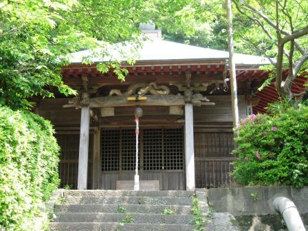 少し先左へ入る。「明応2年(1493)の創建といい、本堂には恵心僧都の作といわれる阿弥陀三尊像が安置されている。「山号の円城山は、この辺りが浦賀城の一廓であったことを物語るものです。」の説明板。 |