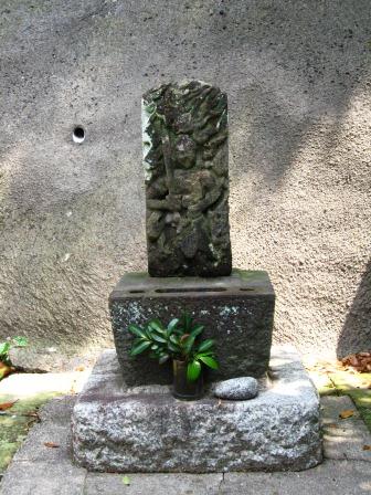 境内に南無阿弥陀仏と刻まれた彫りの深い六字念仏塔があるが、「浦賀探訪くらぶ」の説明板によると、「江戸屋半五郎によって建立されたもので、江戸屋半五郎は浦賀で遊郭を営み(のちに解放)、後に徳本上人の弟子 深本(深心)となり仏門に帰依したという。また 『浦賀事跡孝』によれば東林寺境内の稲荷前で 文化6年(1809)当時の花形力士雷電為右衛門の相撲興業が行われたと記 されている。」「深本」が寄進したという西叶神社手洗石がおかれている。 |