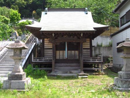 駅から数百m先、左側に八雲神社参道入口という標識が立っている。 細道を入った奥の石段の先に八雲神社がある。 社は江戸時代の建立で、もとは大谷山満宝院八雲堂という修験の寺で、明治維新での廃仏毀釈により、神社に替わったという。 ![]() お堂の屋根には寺院形式の宝珠が乗っている。 境内に当時の屋根に乗っていた宝珠が置かれている。 ![]() |