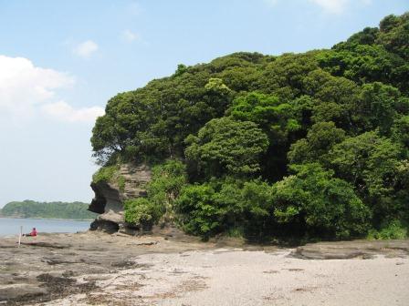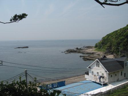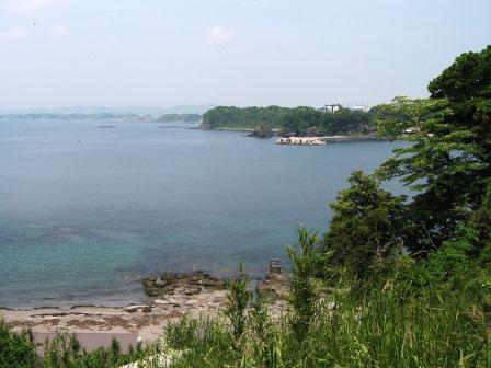 墓碑には「従四位下・陸奥守道寸義同公之墓」と刻まれている。北条軍の囲みに対し約3年の籠城の後、家臣から上総に逃れて再起を図ることを進言されたが、拒否。城兵ことごとく討死した。 義同 辞世の歌 (説明板による) 討つものも 討たるるものも 土器(かわらけ)よ 砕けて後は もとの土くれ ![]() 崖の下へ降りる小道があったので、墓所を下から見上げる。 左手が、広くはないが胴網海水浴場になっている。 三浦道寸の子・義意の胴を網にかけて回収したので、そう呼ばれるという。 |