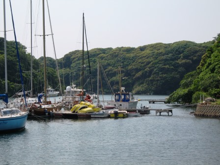 バス停まで戻り、少し先を右手に入り、油壺湾のヨットハーバーに下りて行く。 ここから南へ進み、海戸町まで行き、そこから、三浦半島の真中を走る県道26号線を目指す。 |