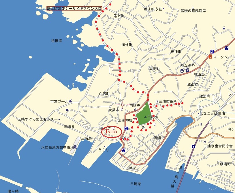 油壺湾から三浦市役所へ |