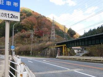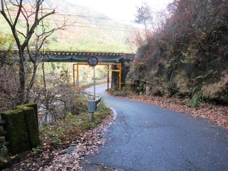 橋場集落から、須原に向かう。左手木曽川の対岸の須原発電所を見ながら、緩やかな坂道を下って行き、JRの踏切を渡る。 その先の須原宿の全景が見渡せる。 200m先の二叉路で、左折して行くのが旧街道である。(右写真) |