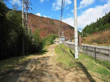 中山道を辿るルートは、この後、大桑駅の少し手前のJRの踏切を渡り右側の山方向に進んで行く。 その前に、大桑一里塚を訪れる。 <実際には、一里塚にたどり着くのに30分以上費やしてしまったので、参考に、詳しく記しておきたい。> その場所は、大桑駅の北側に位置する。、 左の写真は、踏切の反対側の国道から (国道は高い位置にある) 北東方向を写したもので、、写真の中央である。 畑の奥、2階建ての家の右の 白い電信柱が目印である。 ![]() 国道の左側歩道をこの先100m程このまま進み、(右には大桑駅の壁) 左へ入る坂道を下る。右側のコンクリート擁壁の角に、電信柱があり、一里塚の場所と由来を記した紙が貼られている。 その角を右へ入っていく。 |