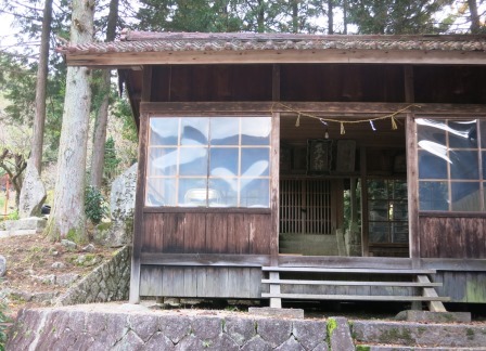 石段を上がっていくと、熊野神社がある。 拝殿の中に入れるようになっており、その奥に本殿がある。 ![]() 拝殿の壁には、牛の絵馬が架けられている。 |