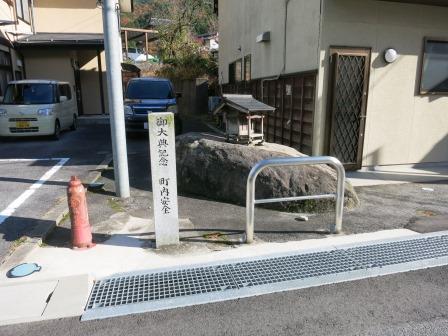 中ほどまで進むと、右手に「旅館庭田屋」という看板の昔の洋式を持った建物がある。「男はつらいよ」のカットにも出てきたという。![]() その脇の細道を上って行くと大きな地蔵菩薩の石像が建っている。 小休石 |