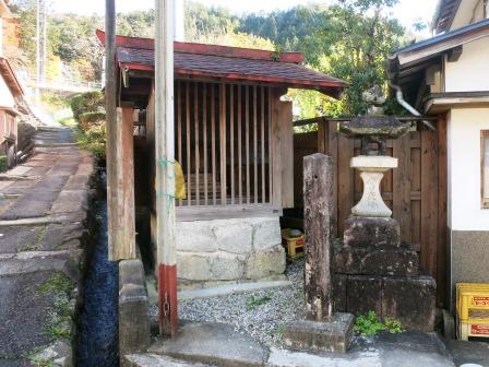 等覚寺の山門を入ると左手に円空堂があり、3体の円空物が納められている。寺の説明板によると、その一つが「弁財天十五童子像」で寺の棟札に貞享年(1686)に造られたことが記されている。 円空はその頃2~3か月滞在したといわれる。 元の道に戻る。 道路整備の為中山道のもとの道筋が変わってきている。 左斜めに下った細道に、享和3年(1803)の秋葉常夜燈が建ち、その先を小さな石段をあがると、整備された道となる。 |