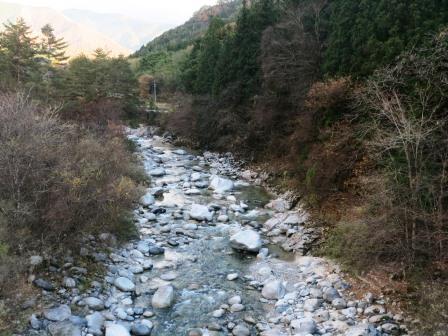 400m程進むと、伊奈川橋が現れる。浮世絵「木曽街道六十九次」(広重と英泉の合作)の中で、英泉が「木曽路駅 野尻 伊奈川橋遠景」を描いているが、その雰囲気は今でも変わらない、といわれる。 伊奈川はすぐ先で木曽川に合流。 |